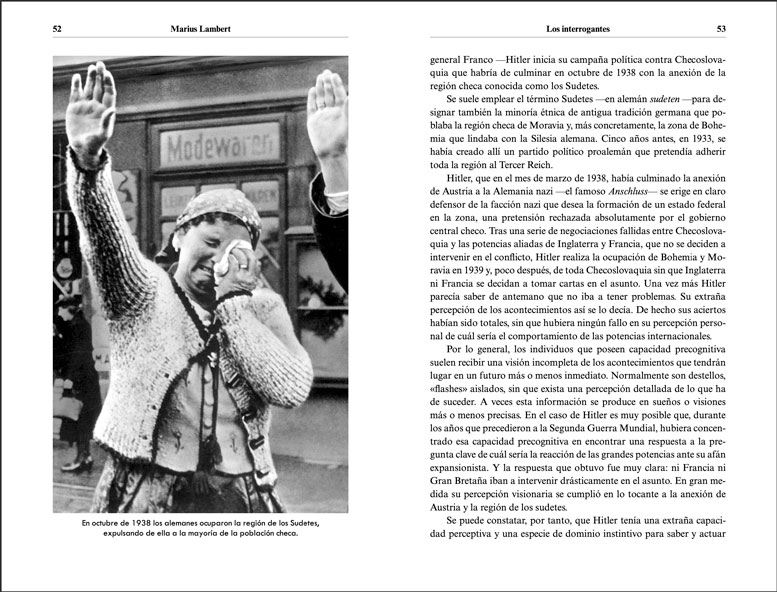 Este libro traza un retrato fiel de aquellos sucesos más significativos que promovieron el auge y la caída del Tercer Reich y de los personajes que generaron la ideología que condujo Europa a una inmensa hecatombe. Y, como no podía ser de otra manera, su líder y artífice principal, Adolf Hitler, tiene un papel esencial.